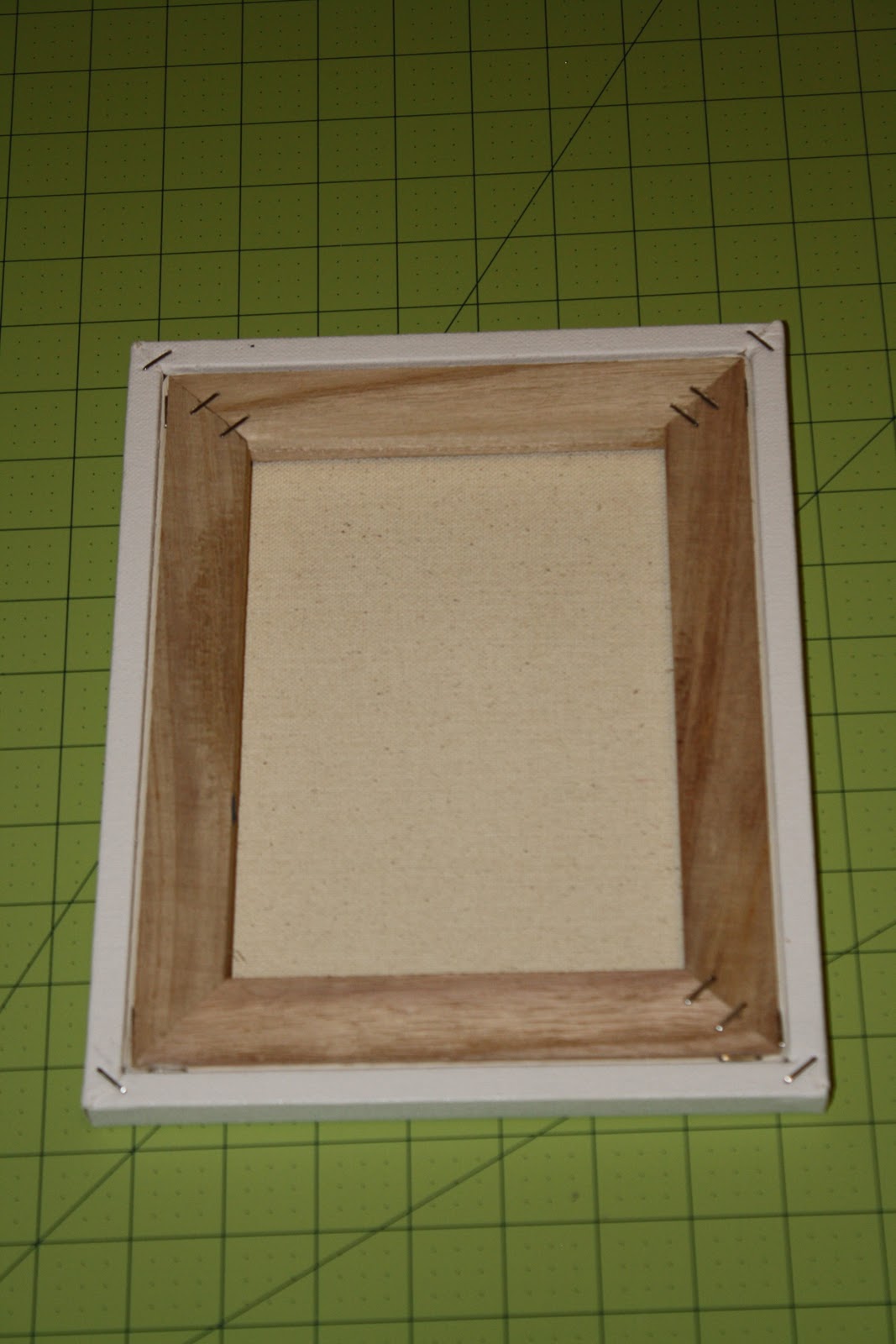 | Make sure you get canvas with wood on the back…you’ll need something to staple your fabric into. |