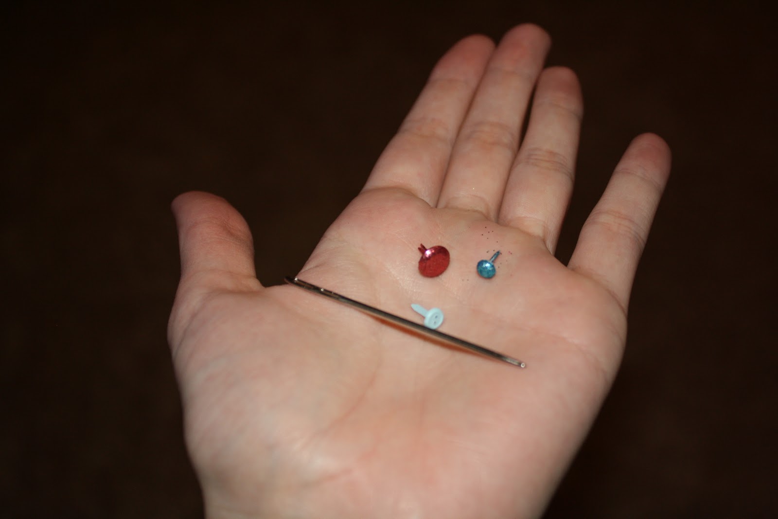| Needle to make the holes and a selection of the brads I used. |