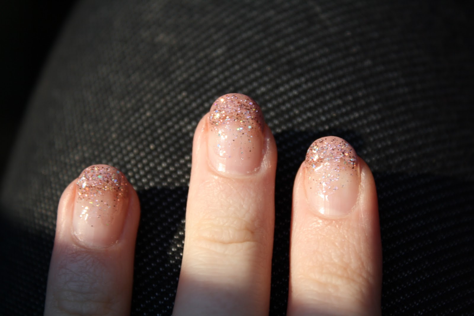 Paint down the nail….this might take a little practice. If I had too much glitter on the brush, I would wipe it back into the bottle and slowly put it on my nail getting lighter the further down the nail I got.