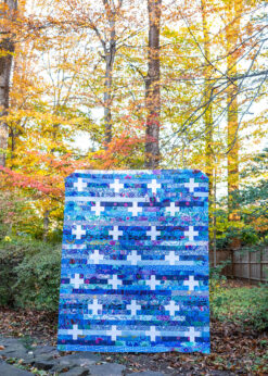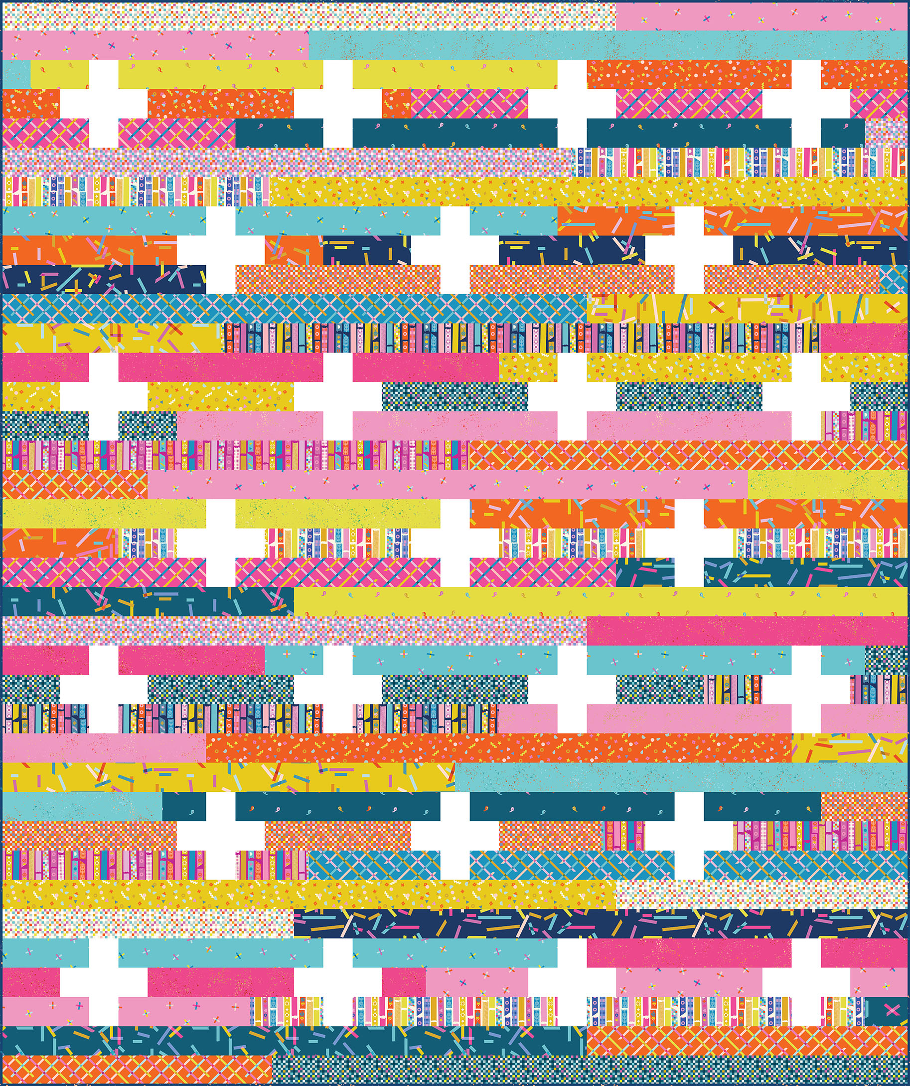 Jelly Plus is such a fun and quick jelly roll pattern! With only straight cuts and seams, this quilt pattern sews up quickly. It’s the perfect choice for when you need a fast quilt or if you just want a unique quilt that shows off a lot of fantastic prints! Just like its sister quilts, Jelly Stars, Jelly Ghosts, Jelly Hearts, and Jelly Trees, it uses precut WOF strips OR 1/4 yard cuts to make the perfectly sized modern throw!