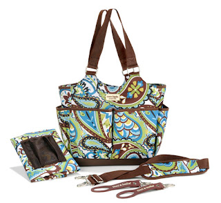 If blue isn’t your thing, there are other colors to choose from including standard black and brown…but why not stand out and be the super cute mommy with a baby bag that gets you attention? 😉 There are tons of features like an insulated bottle tote that fits inside, lots of interior and exterior pockets, a changing pad, and a cross your body strap that is detachable. Wow, I didn’t realize that being a first time mommy that there were so many things to learn about what all is involved in a diaper bag!